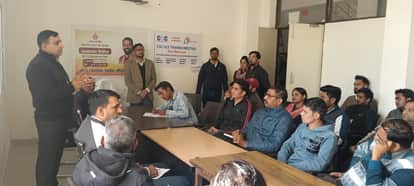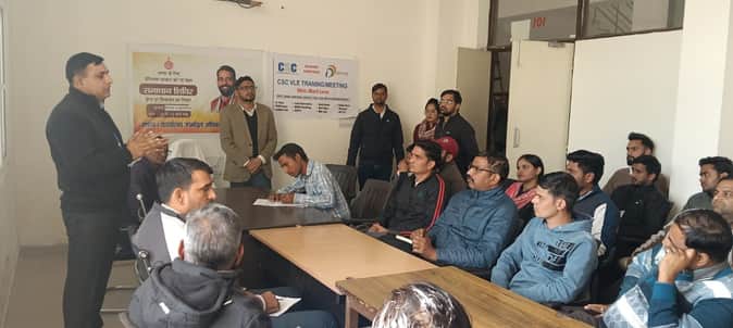 सीएससी संचालकों से बैठक के दौरान बातचीत करते अधिकारी। संवाद