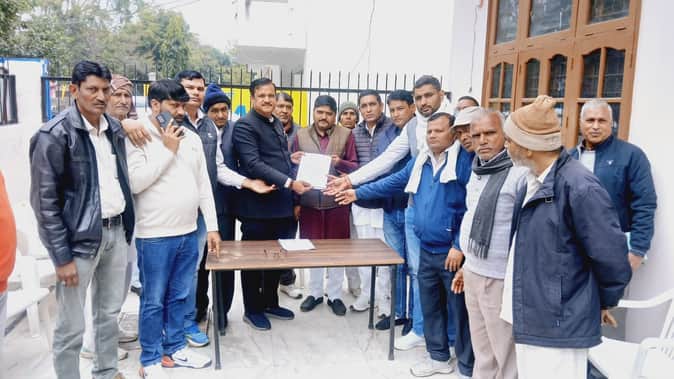 विधायक कृष्ण कुमार को ज्ञापन सौंपते सरपंच। स्रोत : एसोसिएशन