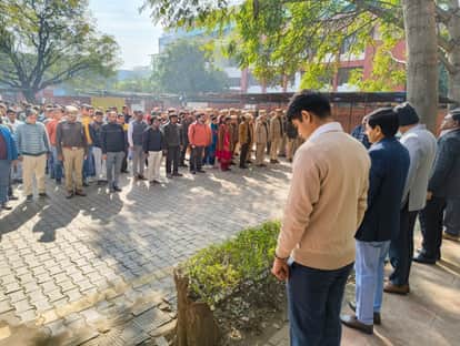 दो मिनट का मौन रखकर नमन करते अधिकारी व कर्मचारी। स्रोत : प्रशासन