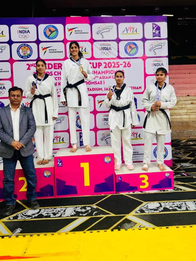 रेवाड़ी। जयपुर के सवाई मानसिंह स्टेडियम में आयोजित द्वितीय फेडरेशन कप 2025–26 राष्ट्रीय ताइक्वांडो चैंपियनशिप में जिले के खिलाड़ियों ने उत्कृष्ट प्रदर्शन करते हुए पदक जीते हैं। यह प्रतियोगिता किड्स, सब-जूनियर, कैडेट, जूनियर और सीनियर वर्गों में आयोजित हुई जिसमें देशभर के खिलाड़ी शामिल हुए।
