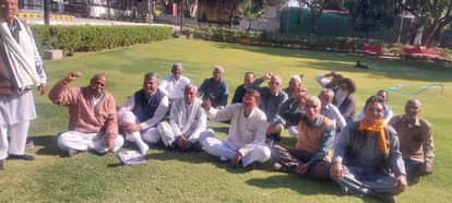 फोटो नंबर-21पीडब्ल्यूडी रेस्ट हाउस में बैठक करते रिटायर्ड कर्मचारी। स्रोत-संस्था