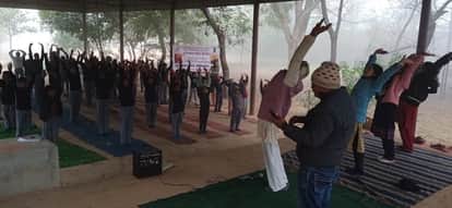 फोटो : सूर्य नमस्कार अभियान के तहत पतंजलि योग समिति द्वारा विद्यार्थियों व स्टाफ को सूर्य नमस्क