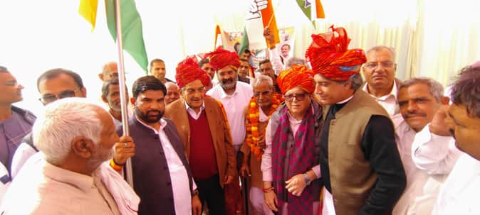 कार्यक्रम में पूर्व सांसद बृजेंद्र सिंह का स्वागत करते कांग्रेस नेता। स्रोत : प्रवक्ता