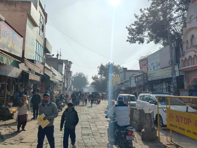धूप निकलने के बाद बावल मार्ग पर लोगों की हो रही आवाजाही। संवाद