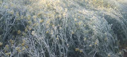 फोटो: 05रेवाड़ी। गांव निमोठ स्थित सरसों के खेत में जमी पाले की परत। स्रोत: किसान