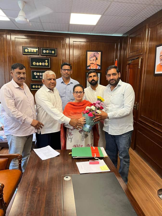 रेवाड़ी। चंडीगढ़ में कैबिनेट मंत्री आरती सिंह राव से मुलाकात करते जिला प्रमुख मनोज यादव। स्रोत: