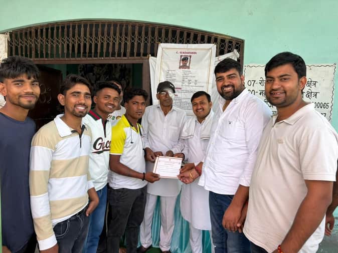 37 : फरमाणा बादशाहपुर गांव में लगाए शिविर में रक्तदाता को प्रमाण पत्र देकर सम्मानित करते वर्तम