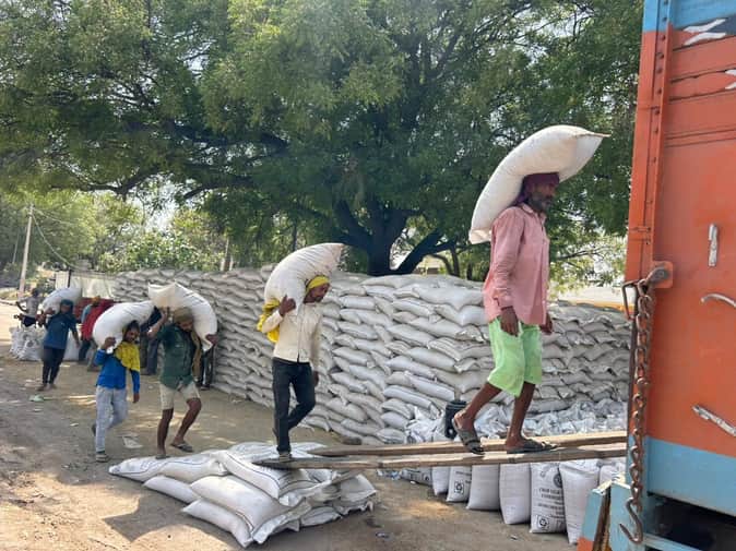 18-रोहतक नई अनाज मंडी में गेहूं का उठान करते मजदूर। संवाद