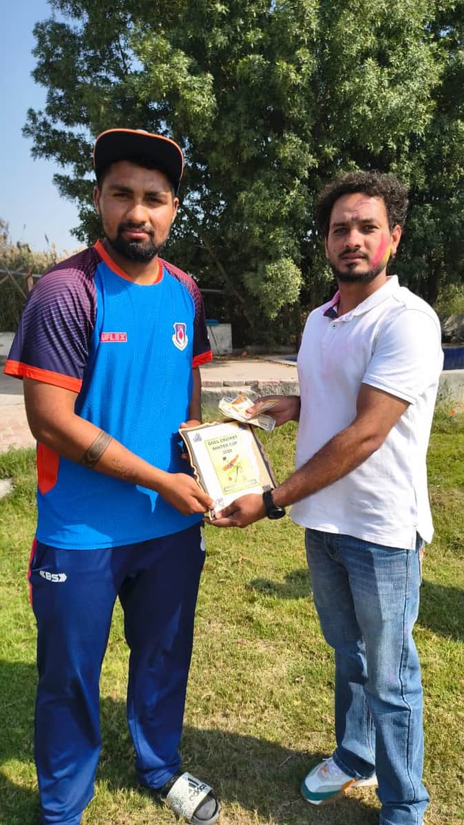 32-रोहतक के मायना स्थित बख्तावर क्रिकेट ग्राउंड में सर्वश्रेष्ठ बल्लेबाज अभिषेक सहारन को सम्मा
