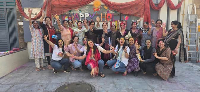30-सेक्टर एक में एक-दूसरे को रंग गुलाल लगाकर होली खेलती महिलाएं। स्रोत सेक्टरवासी