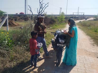 फोटो 03 नामांकन अभियान में डोर टू डोर जानकारी जुटाते शिक्षक। संस्थान