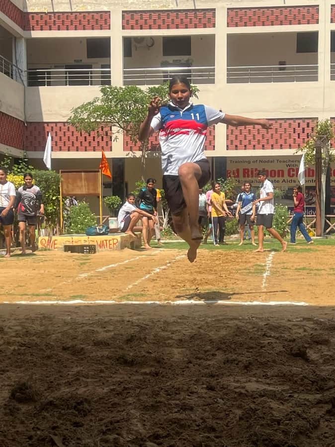 11-वैश्य महिला महाविद्यालय में हुई वार्षिक खेलकूद प्रतियोगिता के लंबी कूद मुकाबले में प्रतिभा द