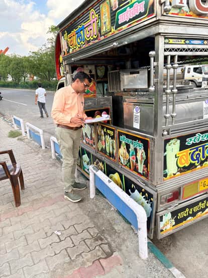 33-एनएच 9 पर आईसक्रीम के सैंपल लेते डॉ. योगेश कादियान। स्रोत: विभाग