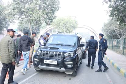 रोहतक। कार सवारों के उत्पात के बाद महर्षि दयानंद विश्वविद्यालय (एमडीयू) में सुरक्षा व्यवस्था बढ़ा दी गई है। वीरवार को कैंपस में मुख्य गेट से लेकर जगह-जगह कमांडो और पुलिसकर्मी तैनात दिखे। विवि मुख्य गेट पर तैनात पुलिसकर्मियों ने आईकार्ड चेक करने के बाद ही छात्र-छात्राओं को कॉलेज में प्रवेश करने दिया। इस दौरान कारों की भी सघन तलाशी ली गई।