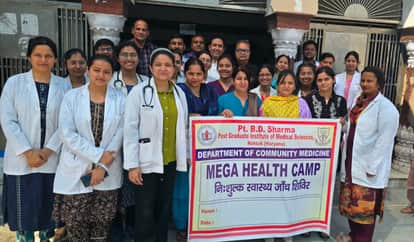 रोहतक। पीजीआई के कम्युनिटी मेडिसिन विभाग ने प्रोफेसर डॉ. वरुण अरोड़ा व डॉ. हिमानी की देखरेख में खेड़ी साध गांव में मंगलवार को स्वास्थ्य जांच शिविर का आयोजन किया। इसमें लगभग 140 मरीजों का इलाज किया गया। इसका शुभारंभ विभागाध्यक्ष डॉ. नीलम कुमार ने किया। डॉ. वरुण अरोड़ा ने बताया कि कैंप में सभी मरीजों के वजन की जांच की गई। उन्हें मुफ्त दवाई, चश्मे आदि वितरित किए गए। स्वास्थ्य को प्राथमिकता देते हुए समय-समय पर 40 वर्ष की उम्र के बाद जांच करानी चाहिए।