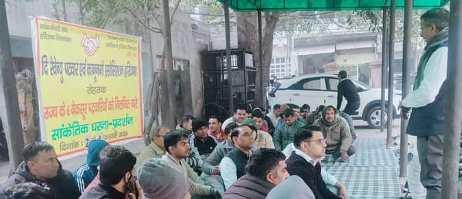 1-रोहतक तहसील कार्यालय में धरने पर बैठे पटवारी कानूनगो एसोसिएशन के सदस्य। स्रोत : एसोसिएशन