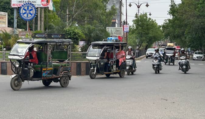 01 रोहतक के दिल्ली रोड पर चलते ई-रिक्शा। संवाद01 रोहतक के दिल्ली रोड पर चलते ई-रिक्शा। संवा