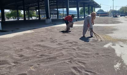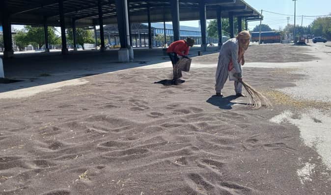 11-मंडी में आई सरसों को फैलाते किसान व मजदूर। संवाद