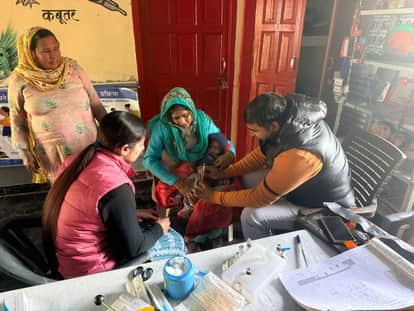 Rohtak News: एमपीएचडब्ल्यू कर्मचारियों ने काले कपड़े व पट्टी बांधकर किया टीकाकरण