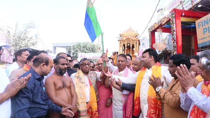 रथ यात्रा पर हुई पुष्प वर्षा :