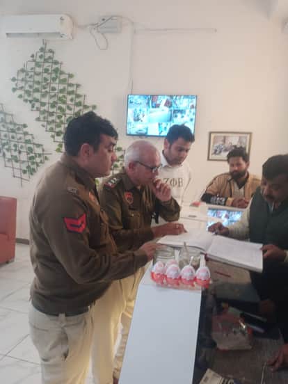 होटल में रजिस्टर की जांच करते थाना प्रभारी सतपाल सिंह