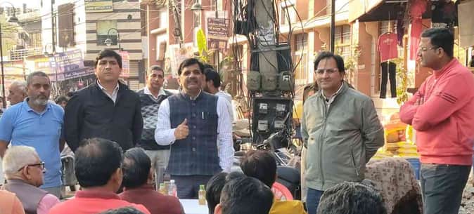34-बाजार में व्यापारियों से बातचीत करते विशेष स्वच्छता अधिकारी प्रदीप कौशिक। स्रोत : निगम