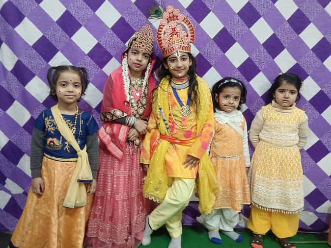 47...श्रीमद्भागवत कथा के लिए राधा कृष्ण की वेशभूषा में तैयार बच्चे। स्रोत : आयोजक