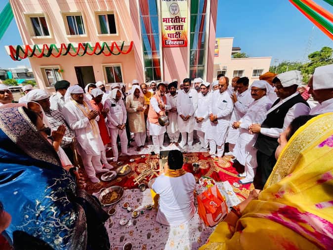 जिला कार्यालय सरसाई कमल में हवन करते हुए भाजपा नेता व कार्यकर्ता। पार्टी