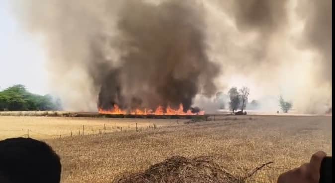 मीरपुर के खेत में जलती गेहूं की फसल। स्रोत : वीडियाेग्रैब
