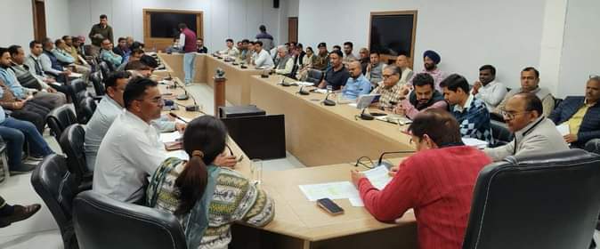 सिरसा। अतिरिक्त उपायुक्त वीरेंद्र सहरावत अधिकारियों की बैठक लेते हुए। सूचना विभाग