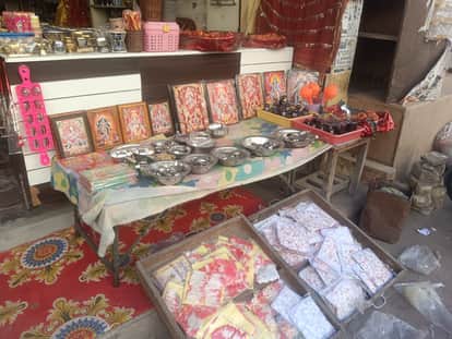 नवरात्र को लेकर दुकानों के बार लगाया हुआ सामान। संवाद