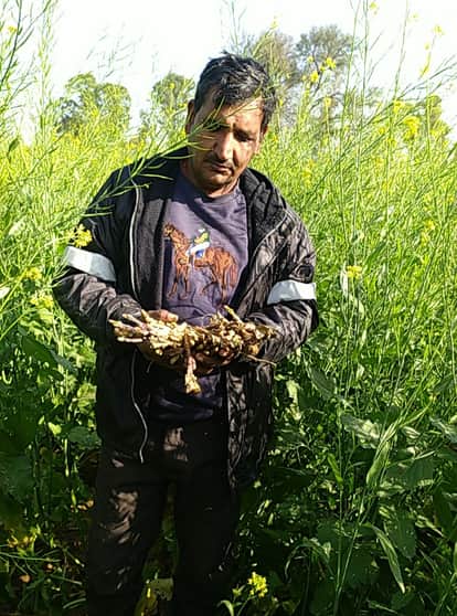 डिंग मंडी। सरसों की फसल दिखाते हुए किसान। किसान