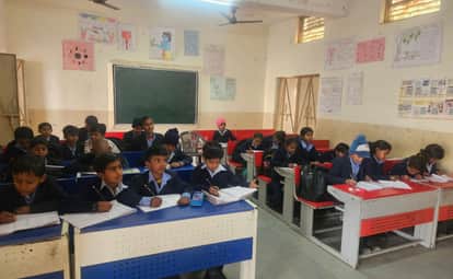फोटो 19- सोनीपत के गढ़ी ब्राह्मणान स्थित राजकीय विद्यालय में शिक्षा ग्रहण करते विद्यार्थी। फा