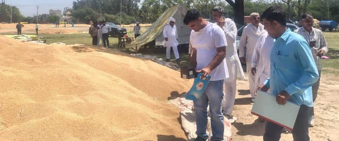 फोटो : सोनीपत के फरमाणा खरीद में गेहूं की खरीद करते एजेंसी कर्मी। स्रोत: पाठक