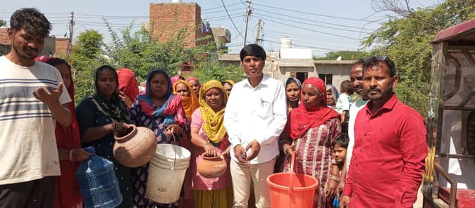 फोटो . सोनीपत की देवीलाल कॉलोनी में पानी की मांग को लेकर प्रदर्शन करते लोग। स्रोत: पाठक