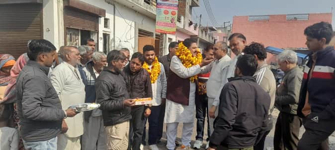 फोटो 16: सोनीपत के गन्नौर स्थित हरि नगर में नगर पालिका अध्यक्ष अरुण त्यागी का स्वागत करते स्था