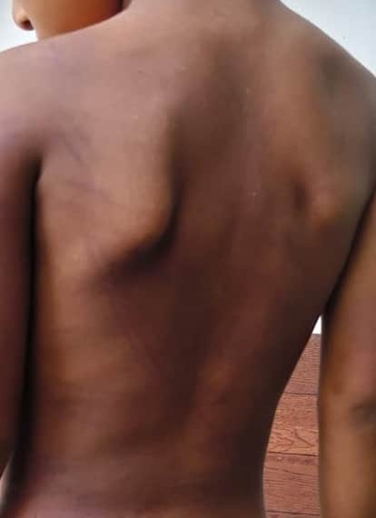 फोटो : सोनीपत के गांव में पिटाई के कारण नाबालिग के शरीर पर लगे चोट के निशान। स्रोत: पाठक