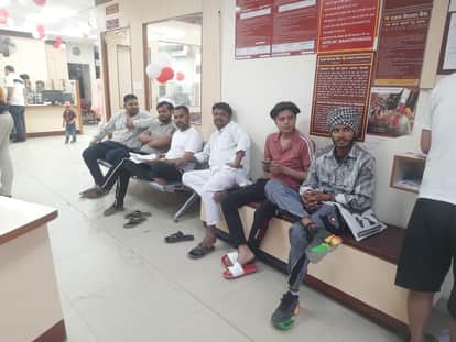 फोटो : सोनीपत के मॉडल टाउन स्थित पंजाब नेशनल बैंक में बायोमेट्रिक कराने के इंतजार में बैठे श्र