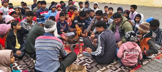 फोटो : सोनीपत के गांव पबनेरा में आयोजित चरित्र निर्माण एवं व्यायाम प्रशिक्षण शिविर के दौरान हवन
