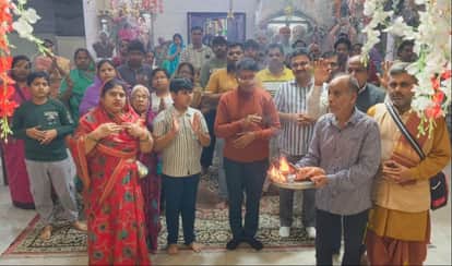 मंदिर में सामूहिक आरती करते श्रद्धालु। संवाद