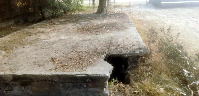खेल मैदान में बना मैनहोल का टूटा स्लैब। संवाद