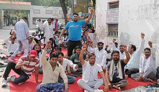 Sonipat News: निगम के पे रोल पर लेने की मांग, संविदा कर्मियों का धरना जारी