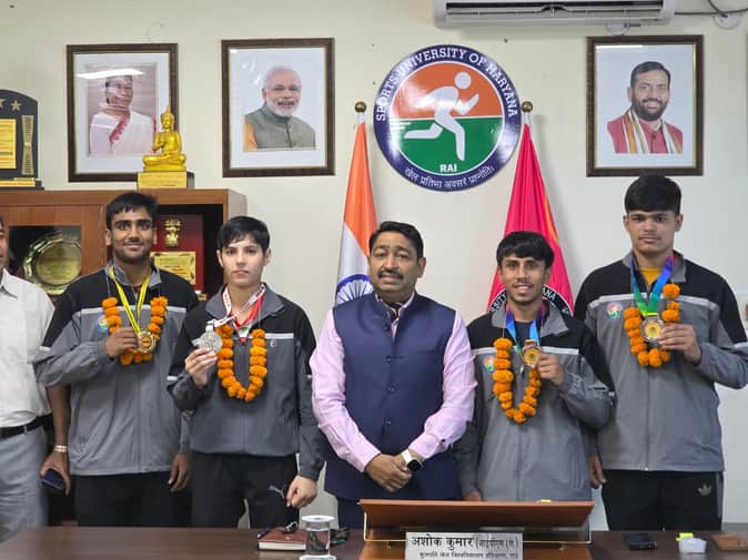 सोनीपत। हरियाणा खेल विश्वविद्यालय, राई चार खिलाड़ियों ने अखिल भारतीय अंतर विश्वविद्यालय बॉक्सिंग प्रतियोगिता में पदक जीता। इसमें तीन पदक पुरुष वर्ग में और एक पदक महिला वर्ग की प्रतियोगिता में जीता। पदक जीतकर लौटै खिलाड़ियों का सोमवार को विश्वविद्यालय में कुलपति अशोक कुमार ने बधाई दी। साथ ही विश्वविद्यालय के शिक्षण एवं कोचिंग स्टाफ ने सभी का स्वागत किया।