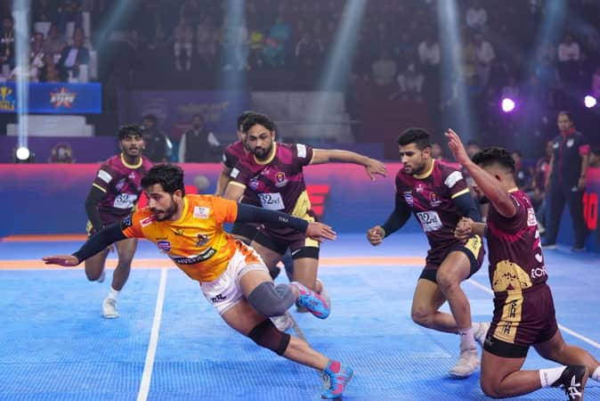 आखिरी स्ट्रैटेजिक टाइम आउट के बाद गुरुग्राम गुरुज ने दो अंकों की बढ़त जरूर बनाई, लेकिन सुरेंद्र गिल की बेहतरीन रेड्स और करनाल के मजबूत डिफेंस ने मुकाबले को फिर बराबरी पर ला दिया। इसी बीच राहुल के हाई-5 ने गुरुज को मैच में बनाए रखा।