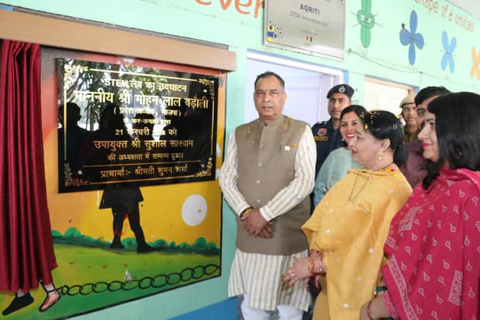 पीएमश्री राजकीय कन्या वरिष्ठ माध्यमिक विद्यालय में एसटीईएम लैब का उद्घाटन करते भाजपा प्रदेश अध्