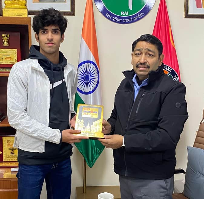 फोटो 08: सोनीपत के हरियाणा खेल विश्वविद्यालय राई में प्रतियोगिता में विजयी मन्नत सैनी को सम्मान