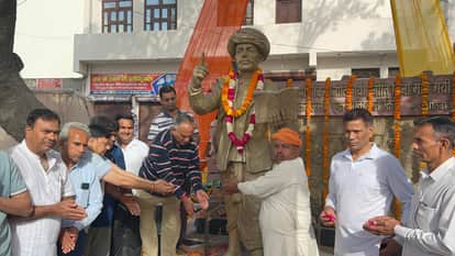 महात्मा ज्योतिबा फुले की प्रतिमा पर माल्यार्पण करते निवर्तमान मेयर राजीव जैन व अन्य। स्रोत : प्