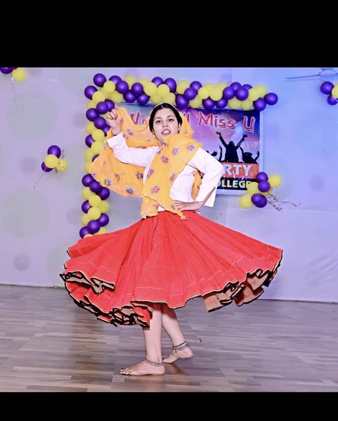 सोनीपत के टीकाराम कन्या महाविद्यालय में आयोजित कार्यक्रम के दौरान नृत्य की प्रस्तुति देती छात्र