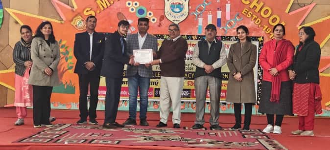 फोटो : सोनीपत के एसएम हिंदू विद्यालय में प्रतियोगिता में विजेता विद्यार्थी को सम्मानित करते उप