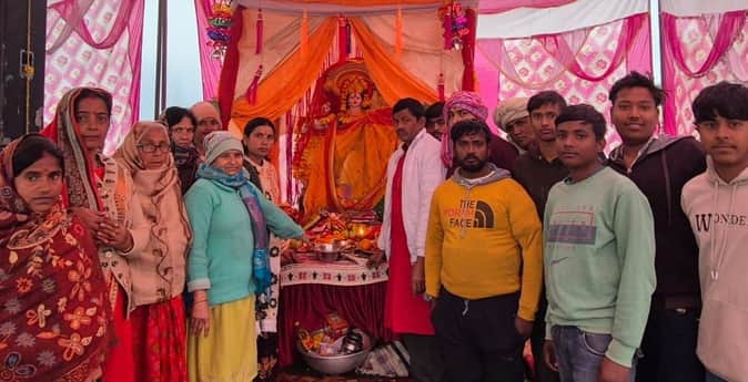 फोटो : सोनीपत के गांव बड़ी में सरस्वती की पूजा अर्चना करते पर मिथिलांचल सेवा समिति के सदस्य। स्